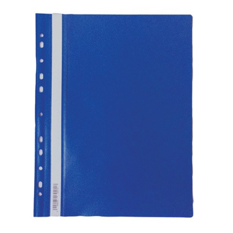 Gyorsfűző PP pd A/4 lefűzhető sötétkék * 200 lap lefűzésére alkalmas gyorsfűző * fém lefűző, műanyag leszorító fül * feliratozható oldalcsík * standard euro lyukasztásának köszönhetően lefűzhető iratrendezőbe, gyűrűskönyvbe * 120 mikron vastag áttetsző