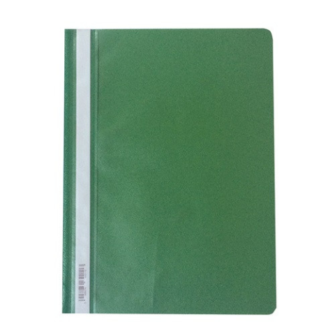 Gyorsfűző PP pd A/4 sötétzöld * 200 lap lefűzésére alkalmas gyorsfűző * fém lefűző, műanyag leszorító fül * feliratozható oldalcsík * 120 mikron vastag áttetsző előlap, 180 mikron vastag színes hátlap