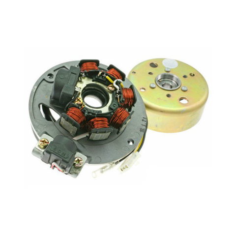 Gyújtás rotorral + statorral Minarelli vertikálisGyújtás OEM minőségben, nagyon jó ár-érték arányban. Nagyon jó alternatíva a gyártó eredeti alkatrészeihez, amelyek általában nagyon drágák. MBK Booster / Yamaha BW számára 2004-ig.Gyújtás összetétele Minar