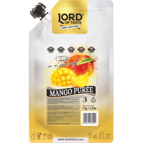 Egzotikus mangó ízű gyümölcspüré, amely frissességet és édes trópusi aromát kölcsönöz bármilyen desszertnek vagy koktélnak. 1 kg-os kiszerelés. A Lord of Taste® mango Püré széleskörűen felhasználható, például koktélok, sorbetek, smoothie-k vagy limon