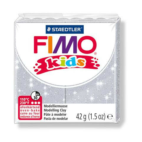 Gyurma, 42 g, égethető, FIMO "Kids", glitteres ezüst gyurma 1 kép