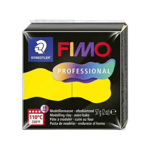 Gyurma, 57 g, égethető, FIMO Professional, sárga A Fimo Professional prémium minőségű termékcsalád a hobbi felhasználók és a profi ékszerkészítők körében is sikerre számíthat. Minőségben és választékban méltó utódja a Classic szériának, így az új 57 g-