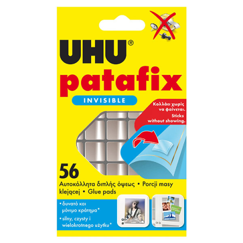 Gyurmaragasztó UHU átlátszó 56 kocka/csomag Többször használható, átlátszó, kétoldalú ragasztópárna. Lehetővé teszi az irodában, háztartásban található dokumentumok, tárgyak rögzítését, és nyom nélküli eltávolítását. Átlátszó és ultravékony.