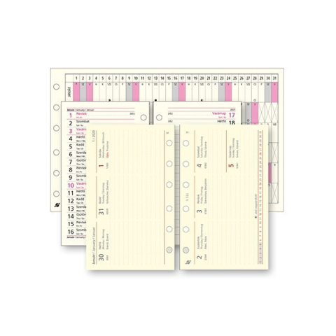 Gyűrűs kalendárium betét SATURNUS S312 napi sárga lapos 2026. Napi beosztású betétlap csomag 176 lap/csomag Mérete: S: 78 x 128 mm