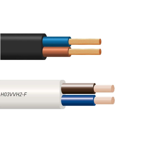 Kettős PVC szigetelésű sodrott réz kábel, lapos kivitelű. Felhasználási terület: beltéri helyiségekben, közepes mechanikai igénybevétel mellett elektromos fogyasztók csatlakoztatására.