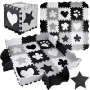Információk Hab szőnyeg csecsemők és gyermekek számára, amelyek puha rejtvényekből állnak, divatos, visszafogott szürke és fehér árnyalatban. A készlet 16 hab rejtvényből áll. Az univerzális színeknek köszönhetően minden gyermekszobába illeszkedik. A s