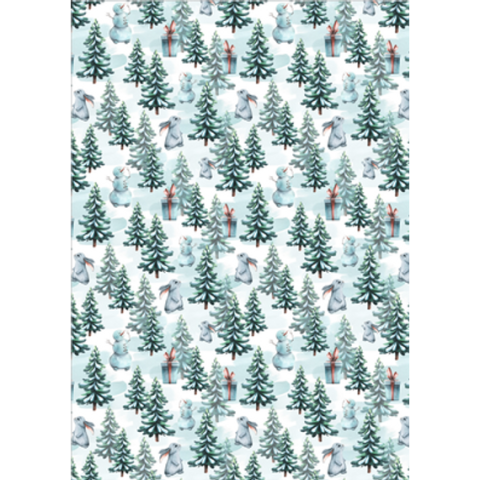 Sütésálló habcsók-transzferfólia, karácsonyi mintával, melyen megtalálható a fenyőfa, hóember, nyuszi és ajándékdoboz is. A fólia mérete 21x28.7 cm