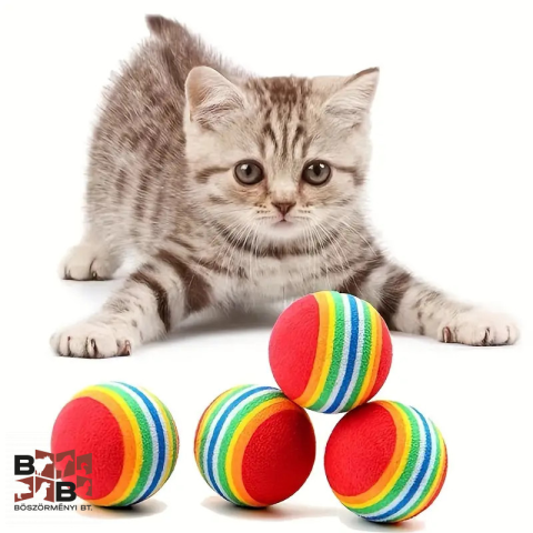 1 kép Habszivacs csíkos szivárvány tömör golyók macskáknak 3 db