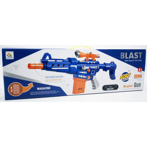 Habszivacs lövő játék gépfegyver Tartalma: 69,5 cm puska távcső tár pajzs Jellemzők: kivehető tárral rendelkezik biztonságos puha habszivacs töltényekkel egyszeri tüzelési mód ravaszrögzítési lehetőség (be/kikapcsolás)