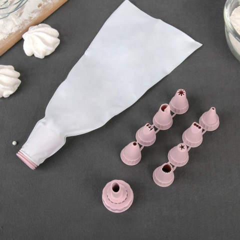 Tortadíszítő készlet / habzsák + 9 különböző fej