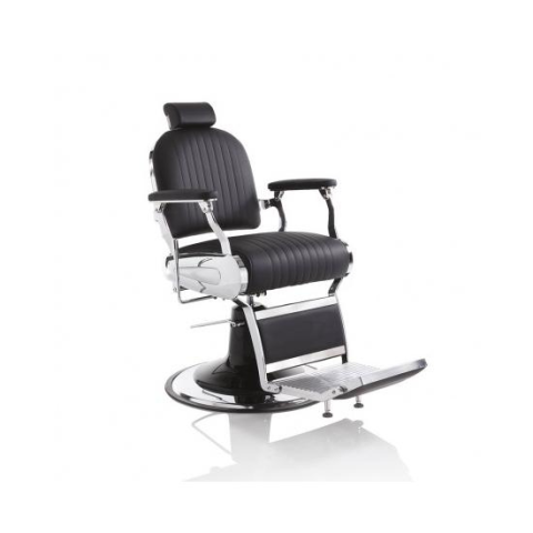 A Hair Cadillac elegáns és nagyszerű barber szék, dönthető háttámlával, kárpitozott lábtartóval és állítható fejtámlával, fekete műbőr borítással áll rendelkezésre