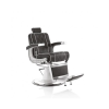 Elegáns és nagyszerű barber szék, dönthető és állítható háttámlával, kárpitozott lábtartóval és állítható fejtámlával, fekete öko műbőr borítással áll rendelkezésre