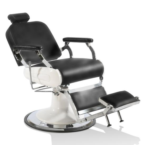 A Hair Jaguar elegáns és nagyszerű barber szék, dönthető háttámlával, kárpitozott lábtartóval és állítható fejtámlával, fekete műbör borítással áll rendelkezésre. Fekete/fehér színével retro hangulatot idéz a barber szalonodba