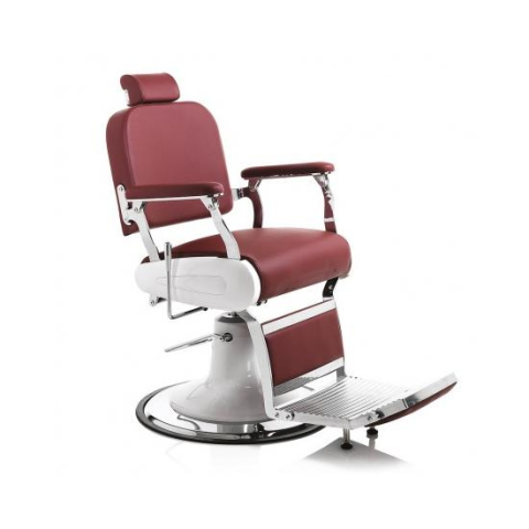 A Hair Jaguar elegáns és nagyszerű barber szék, dönthető háttámlával, kárpitozott lábtartóval és állítható fejtámlával, burgundi vörös műbör borítással áll rendelkezésre. Fekete/fehér színével retro hangulatot idéz a barber