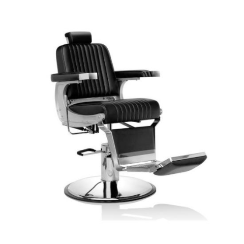 A Hair Triumph elegáns és nagyszerű barber szék, dönthető és állítható háttámlával, kárpitozott lábtartóval és állítható fejtámlával, fekete műbör borítással áll rendelkezésre