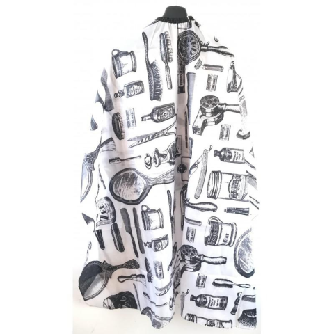 Hajvágó kendő kapcsos,fehér-fekete mintás /J-05-WHITE/