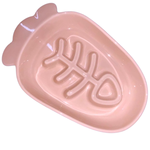 1 kép Hal alakú kerámia evéslassító macskatál, 15x10x2,5 cm, rózsaszín