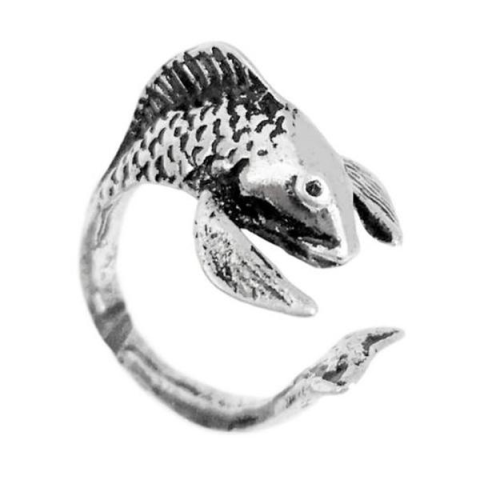 Ezüst színű, állítható méretű halacskás gyűrű horgászoknak és a halak szerelmeseinek. Tökéletes választás horgász ajándéknak nőknek