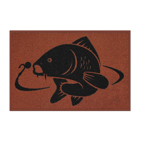 ÖTLETES LÁBTÖRLŐ HORGÁSZOKNAK A bojlis horogra kapó ponty jelenetét ábrázoló gyönyörű szőnyeg, amelyet minden horgász örömmel vesz.A szőnyeg ellenálló anyagból készül, fekete színű varrású szegéllyel, alsó része latex réteggel kezelt.60 x 40 cm-es mére