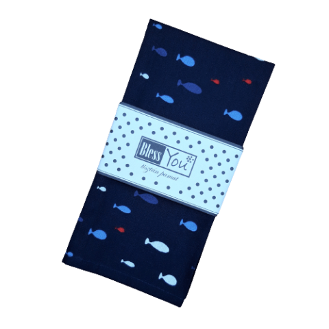 Halas textil szalvétaA textilszalvéták különleges, ötletes és egyedi díszei az asztalnak, használatuk egyben igen környezetbarát és pénztárcakímélő megoldás is. Nem kell minden használat után szemétbe dobni és újat venni, mint a papírszalvétából. Ugyanúgy használhatod étkezés közben, vagy szendvics csomagolására.A szalvéták mérete 33x33 cm. 100% pamutból készültek, mosógépben 40 fokon moshatóak, vasalhatóak.