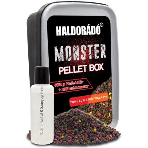 1 kép HALDORÁDÓ MONSTER Pellet Box - Tonhal & Szúnyoglárva 400g+100ml