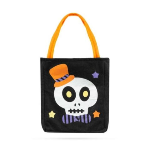 Halloween ajándéktáska - textil, koponya, 18 x 22 cm