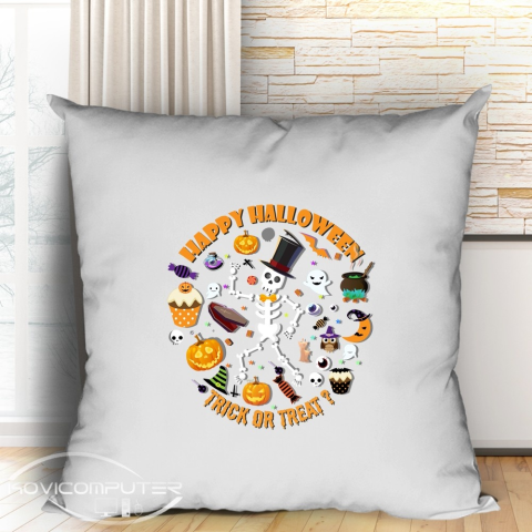 Párna Halloweenre, csokit vagy csalunk. Népszerű mintáink egyike amiben stílusosan kívánhatsz Boldog Halloweent, tökéletes választás minden férfinak, nőnek és gyereknek. Happy Halloween dekoratív és tartós minta, ami olyan technológiával készül, hogy nyug
