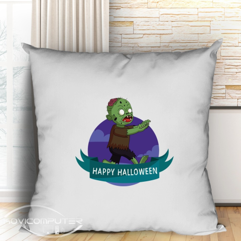 Happy Halloween párna, zombis ajándék. Ajándékozz barátodnak, rokonodnak egy ijesztő párnát Halloween napjára. Rémes meglepetés a félelmek éjszakáján. Párna huzat és belső egyben. A párna mérete 40x40 cm, a huzat praktikus húzózárral ellátott, így könn