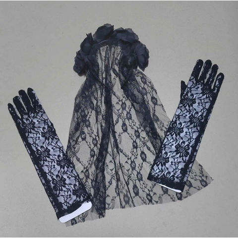 Tedd fel kérdésed a(z) Halloween rózsás fejpánt csipke fátyollal és csipke hosszú kesztyűvel FEKETE termékről!