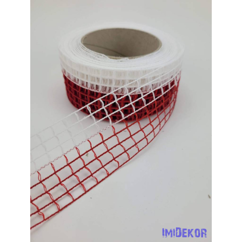 Hálós szalag 4,5cm x 10m - Fehér-Piros