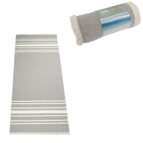 Tegyen valamit magáért és a természetért, szerezzen be egy környezetkímélő anyagból készült törölközőt, amely nem terheli a természetet. A szürke HAMAM strandtörölköző 100% pamutból készült. Ez a törölköző nagy puhaságot és kiváló nedvszívó képességet biztosít. A 80x180 cm-es méret a strandon, vagy tó mellett is használható, de a piknik takarót is kiválóan helyettesítheti. A rövidebb végén rojtokkal ellátott szürke árnyalat további dizájntart