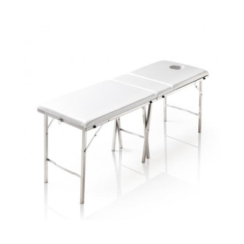 Handy White masszázságy fehér színben, masszív vázzal, állítható háttámlával. Összecsukható kivitel, nagy teherbírással. Tartozék hordtáskával