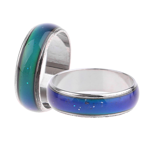 Hangulattól függően színváltoztató gyűrű.Tulajdonságok:Méret: 9-es (A második képen látható)(Számos méret közül választhat.)Hogyan működik? Az ékszer színváltós része thermotropic folyékony kristállyal van töltve, amely a hőmérséklet változásra, színváltozással reagál. A gyűrű 12 félee színváltozásra képes. Ezek a gyűrűk a testünkbe végbemenő, a külső köörnyezeti hatásoknak köszönhető változásokra reagálnak (Ilyen az amikor idegesek