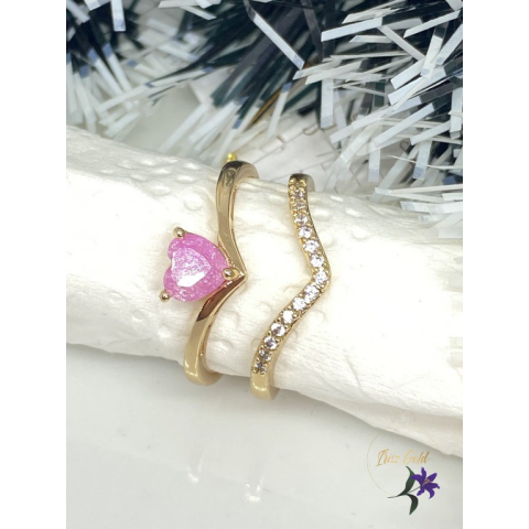 Antiallergén dúo gyűrűEgyik gyűrű apró cirkónia kövekkel diszitve Második középen egy szív alakó rózsaszin cirkónia kő Szin : 18 K Kettő az egyben .Akár külön külön is viselhet