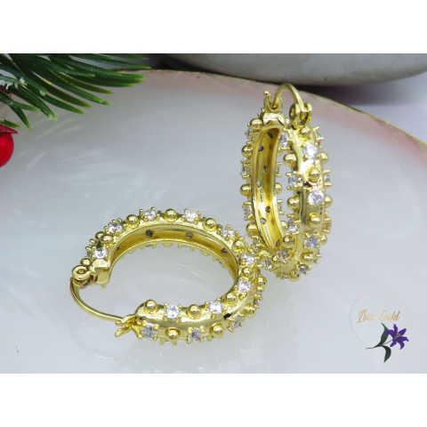 Gold Filled karika fülbevaló apró kövekkel díszítve Nagyon egyedi ,divatos fülbevaló Szin: 14K Méret: 25x4mm Karika belső méret: 16mm
