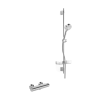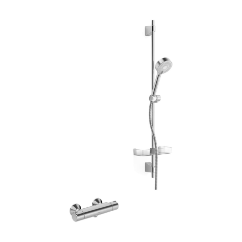 Zuhanykészlet termosztatikus csapteleppel, hossza 92 cm. A csaptelepek közötti távolság 150 mm. Áramlás 12 liter/perc.