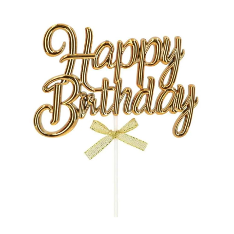 A beszúró teljes magassága: 19 cm. A betűk magassága: 8 cm. Színe: arany. Anyaga: műanyag. Ez az arany színű Happy Birthday beszúró tökéletes kiegészítője a születésnapi tortáknak, hogy vidám és ünnepi hangulatot teremtsen. A minőségi anyagból készült