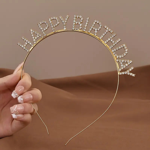 1 kép Happy Birthday arany színű, strasszköves fejpánt,fajpánt