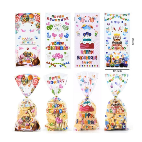 \nÜnnepeld stílusosan a születésnapokat ezzel a Happy Birthday feliratos celofán zacskó szettel! Tökéletes választás apró ajándékok, sütemények, cukorkák vagy köszönőcsomagok vidám és ünnepi csomagolásához.