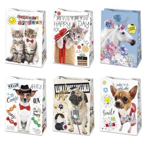 Happy Birthday papír ajándéktasak, ajándékzacskó Anyaga: papírMéret: 23x32x11 cm6 féle minta vegyen!10 darab/csomag