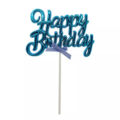 A beszúró teljes magassága: 19 cm. A betűk magassága: 8 cm. Színe: kék. Anyaga: műanyag. Ez a kék színű Happy Birthday beszúró tökéletes kiegészítője a születésnapi tortáknak, hogy vidám és ünnepi hangulatot teremtsen. A minőségi anyagból készült topp