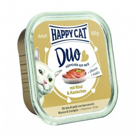 1 kép HAPPY CAT DUO PÁSTÉTOMOS FALATKÁK MARHA-NYÚL 100g