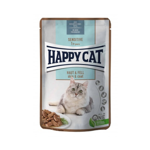 Teljes Happy Cat Pouch Szósz Sensitive Skin&Coat – 12×85 g termékleírás