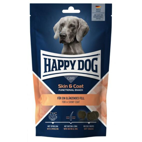 Happy Dog Care Snack Skin&Coat 100g - Támogasd Kutyád Bőrét és Szőrzetét Melyik kutyatulajdonos ne szeretné, ha kutyája selymes, fényes bundával rendelkezne? A Happy Dog Care Snack Skin&Coat kutyafalat bőraktív tápanyagokkal és