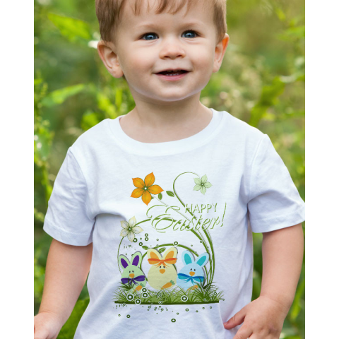 Happy Easter, húsvéti tojásos gyerek póló. Húsvéti meglepetés, Happy Easter gyerek póló nyuszitojás mintával. Öltözz az ünnepre stílusosan, és lepd meg magad, és családtagjaid cuki pólóra a locsolkodás napjára. Akár az egész család részére rendelhető több