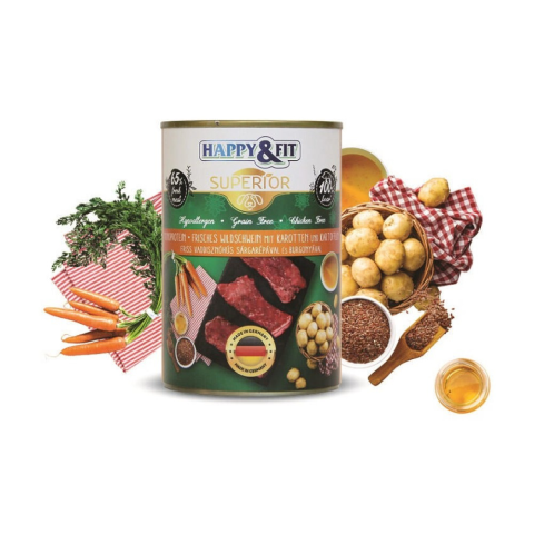 Teljes Happy&Fit Superior Dog Konzerv Friss Vaddisznóhús S.répával, burgonyával 400g termékleírás