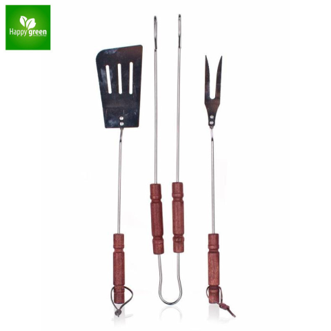 HAPPY GREEN Krómozott grillszett, 3 db 5012050-A HAPPY GREEN Krómozott grillszett, 3 db 5012050-A A 3 részes grillező készlet krómozott acélból készült fogót, forgatót és villát tartalmaz. A fogantyú fából készült. A készlet tartalmazza a grillezéshe
