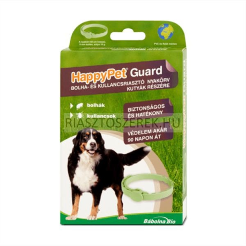 HappyPet Guard Bolha és Kullancsriasztó nyakörv kutyák részére Felhasznáható: A macska/kutya testfelületén alkalmazva bolhák és kullancsok riasztására. Használati utasítás: Vegye ki a tasakból a nyakörvet, és rögzítse a macska/kutya nyaka köré úgy, hogy