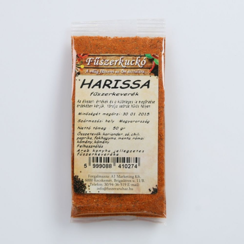 A Tunéziábó származó csípős chilis harissa fűszerkeverék, az arab ételek gyakori fűszerkeveréke. Főleg kuszkuszokhoz és tagine-okhoz használható, másfelől asztali fűszer is. De a fűszerkeverékünkkel egyszerűen készíthet harissa pasztát is. Csak tegyen ho