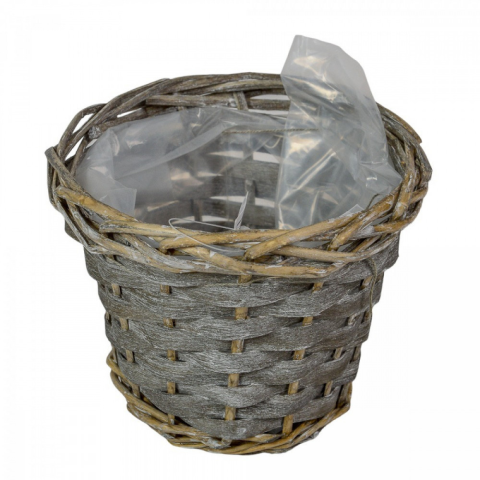 Hasított fa kaspó szürke bélelt D13,5x11cm